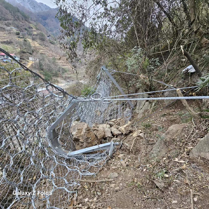 2024年2月20日,该危石垮塌,垮塌的土石被被动防护网拦住,未造成人员伤亡和财产损失,有效防范了地质灾害事件发生。